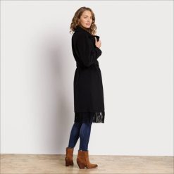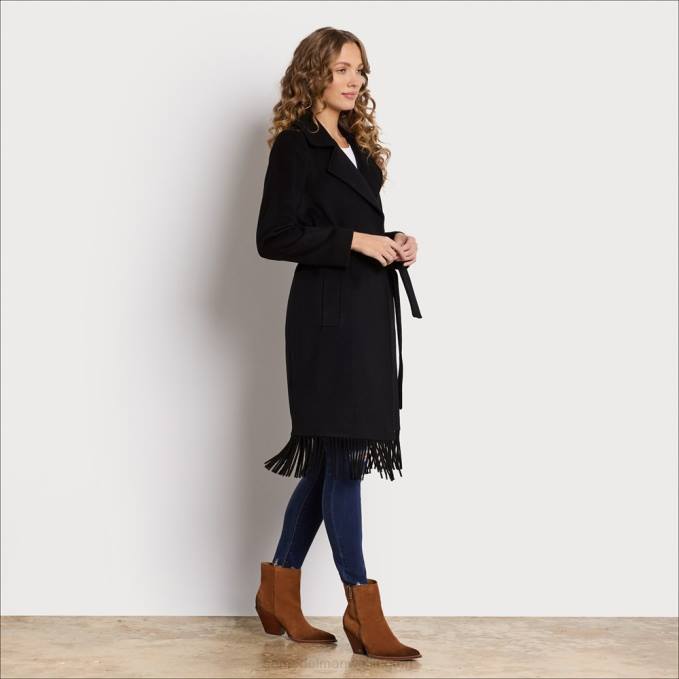 When happens when an elegant coat meets a cozy fringed blanket? This fringe wrap wool coat, complete with a waist-defining belt. It’s a standout that deserves real estate in your coat closet.