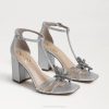 The Donnie heeled sandals have a t-strap ankle, embellished buckle and upper, along with crystal lily adornments.
