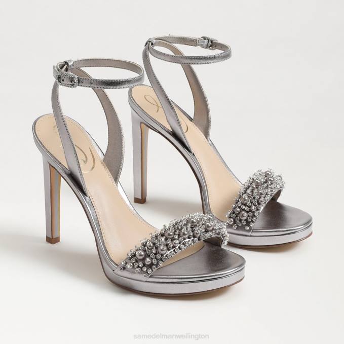 Women Footwear Sam Edelman Jade Perla Ankle Strap Heel Pewter 4N2P616