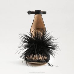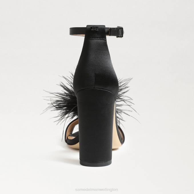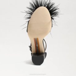 Women Footwear Sam Edelman Yaro Feather Heel Sandal Black Satin 4N2P763