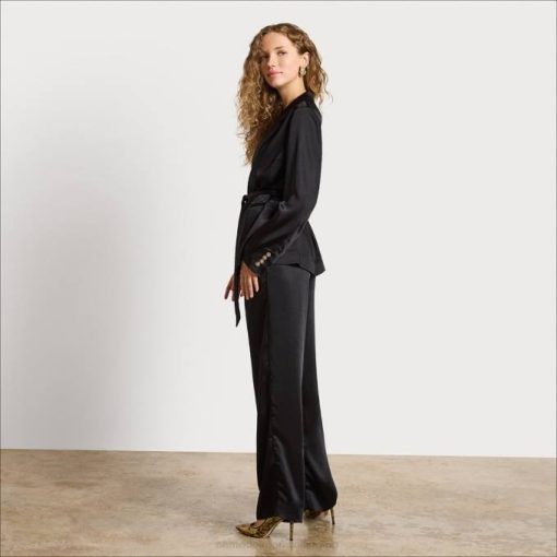 Women Apparel Sam Edelman High Rise Codie Wide Leg Pant Black Satin 4N2P1235