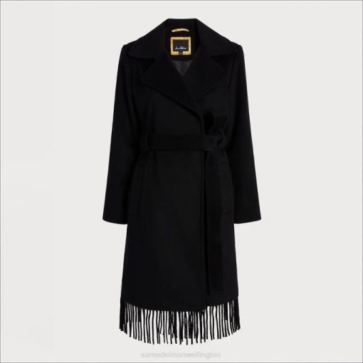 When happens when an elegant coat meets a cozy fringed blanket? This fringe wrap wool coat, complete with a waist-defining belt. It’s a standout that deserves real estate in your coat closet.